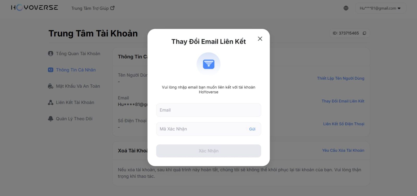 Hướng dẫn thay đổi gmail mihoyo